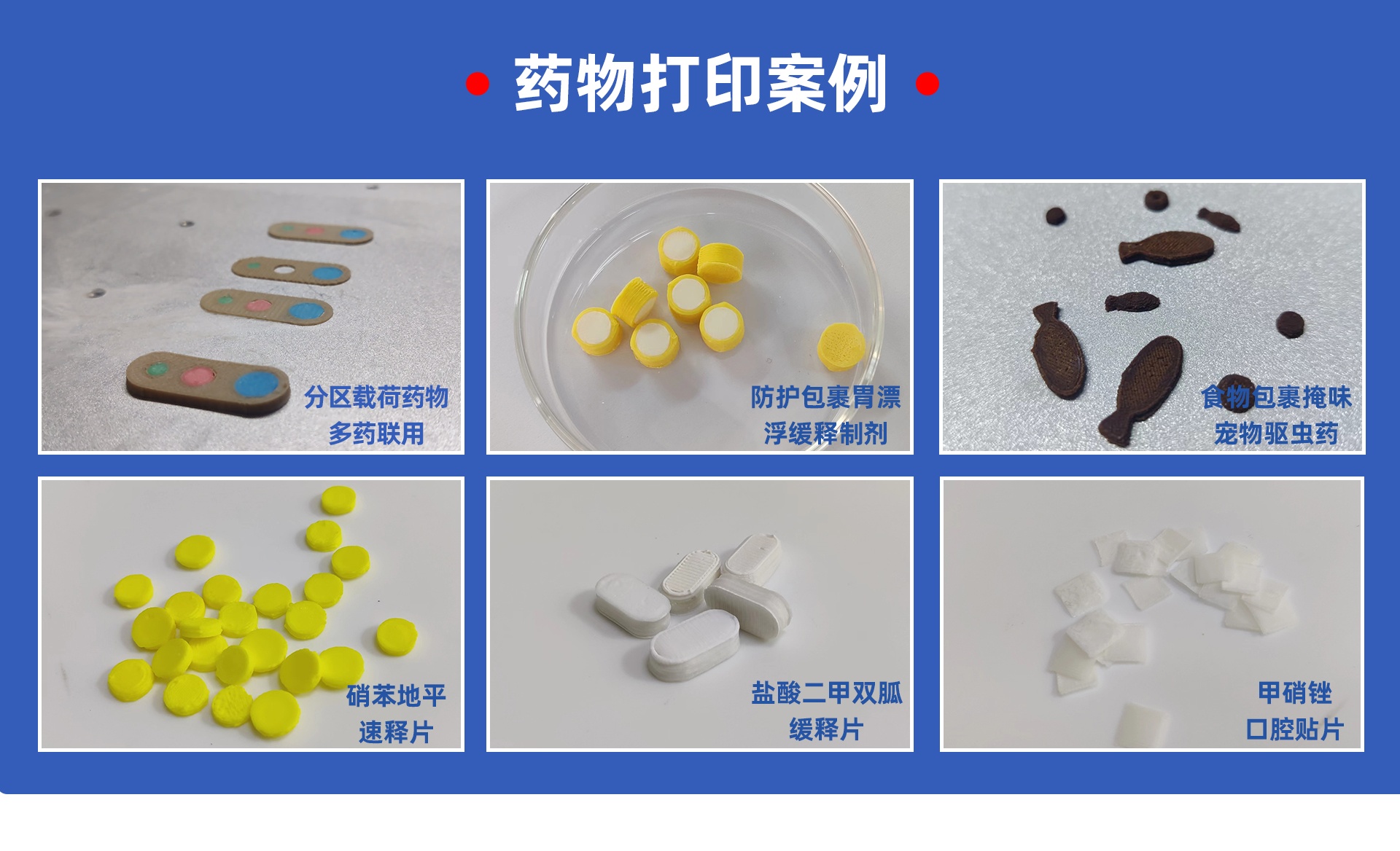 通過我司藥物3D打印機,利用計算機設(shè)計的數(shù)字模型對市售藥品粉末進行再成型,從而精準(zhǔn)控制每一片分劑量的藥物含量。解決傳統(tǒng)藥物分劈分劑量和粉末分劑量準(zhǔn)確性和均勻性不佳、容易污染、順從性差、無法標(biāo)記等痛點。
