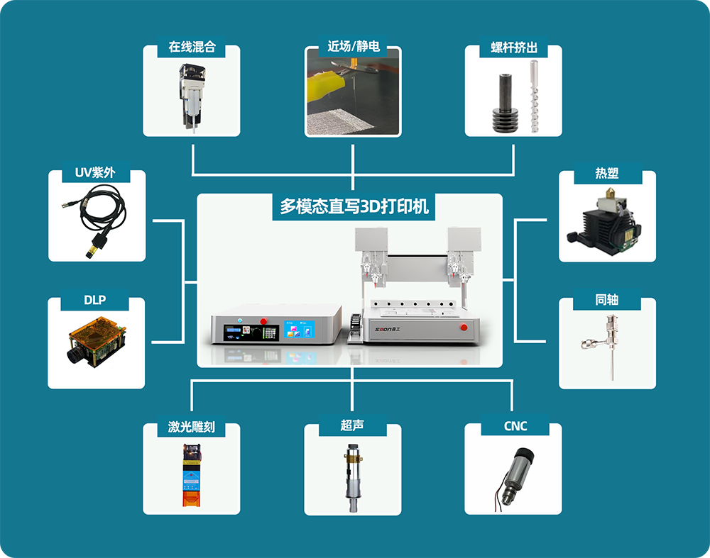 自主研發(fā)的科研型3D打印設備,支持多模態(tài)、多功能的拓展和定制需求