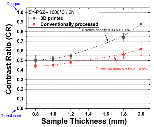 實驗打印簡單幾何樣品,表征機械和光學(xué)性能。結(jié)果顯示材料高致密性、優(yōu)異力學(xué)性能,5Y-PSZ立方晶相結(jié)構(gòu)確保高透光性。