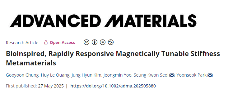 標(biāo)題:Bioinspired, Rapidly Responsive Magnetically Tunable Stiffness Metamaterials