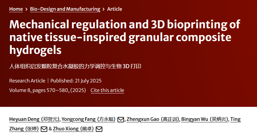 標(biāo)題:Mechanical regulation and 3D bioprinting of native tissue-inspired granular composite hydrogels