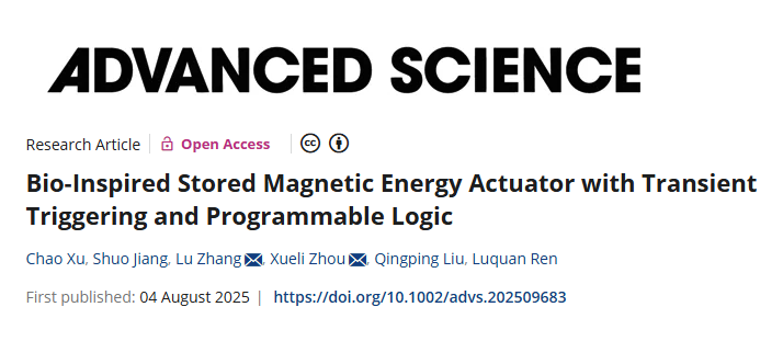論文標(biāo)題:Bio-InInspired Stored Magnetic Energy Actuator with Transient Triggering and Programmable Logic