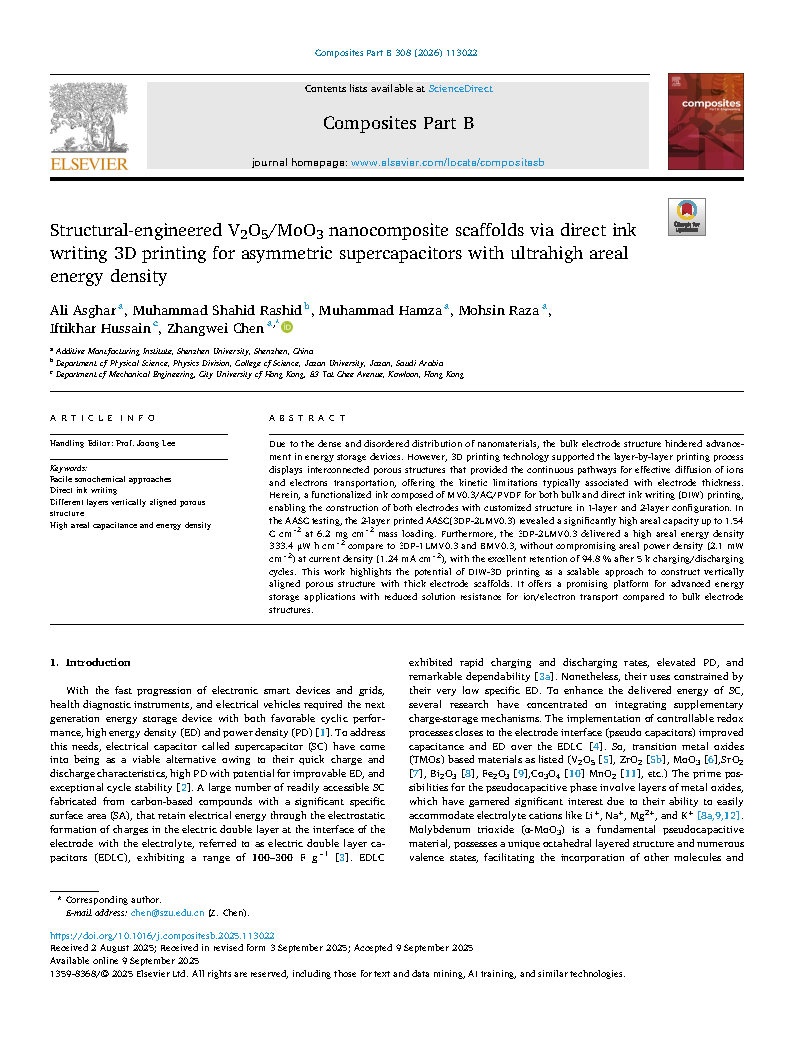 Structural-engineered V?O?/MoO? nanocomposite scaffolds via direct ink writing 3D printing for asymm
