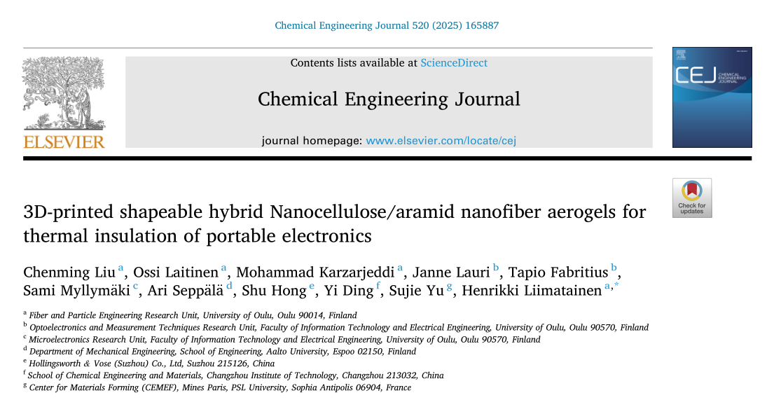 Chenming Liu(芬蘭奧盧大學(xué)纖維與顆粒工程研究單元)、Ossi Laitinen(芬蘭奧盧大學(xué)纖維與顆粒工程研究單元)、Mohammad Karzarjeddi(芬蘭奧盧大學(xué)纖維與顆粒工程研究單元)、Janne Lauri(芬蘭奧盧大學(xué)信息技術(shù)與電氣工程學(xué)院光電子與測量技術(shù)研究單元)、Tapio Fabritius(芬蘭奧盧大學(xué)信息技術(shù)與電氣工程學(xué)院光電子與測量技術(shù)研究單元)、Sami Myllym?ki(芬蘭奧盧大學(xué)信息技術(shù)與電氣工程學(xué)院微電子研究單元)、Ari Sepp?l?(芬蘭阿爾托大學(xué)工程學(xué)院機械工程系)、Shu Hong(霍林斯沃思&沃斯(蘇州)有限公司)、Yi Ding(常州工學(xué)院化學(xué)工程與材料學(xué)院)、Sujie Yu(法國巴黎礦業(yè)學(xué)院材料成形中心)、Henrikki Liimatainen(芬蘭奧盧大學(xué)纖維與顆粒工程研究單元,通訊作者)