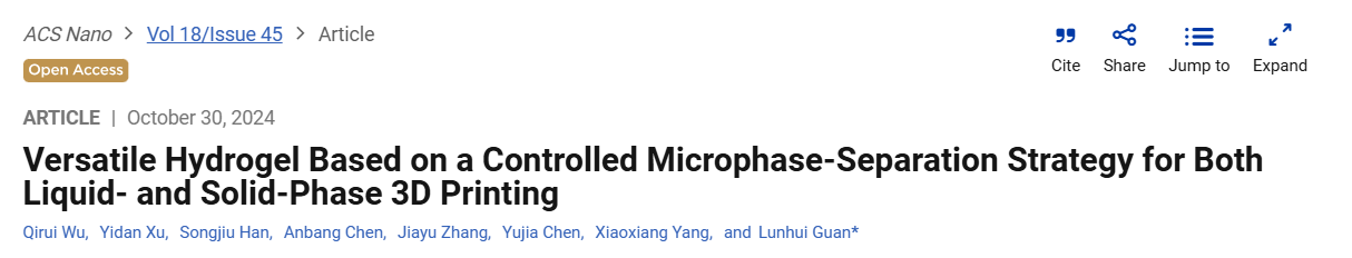 | 論文標題 | Versatile Hydrogel Based on a Controlled Microphase-Separation Strategy for Both Liquid- and Solid-Phase 3D Printing |