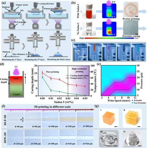 核心問題:DLP和DIW兩種主流3D打印技術(shù)對墨水性能要求存在顯著差異("語言障礙"),DLP需要低粘度、高透明度墨水,DIW則需要高粘度半固體凝膠,目前缺乏同時兼容兩種技術(shù)的水凝膠材料。