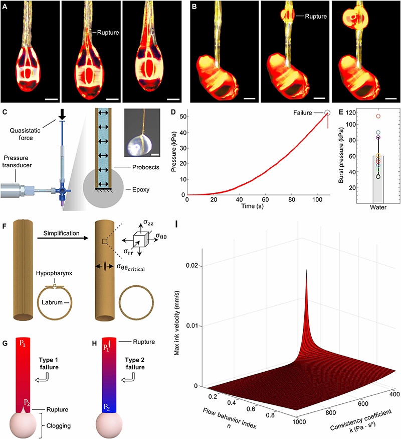 研究人員通過實驗和理論分析,研究了蚊子口器在打印過程中的機械失效行為: